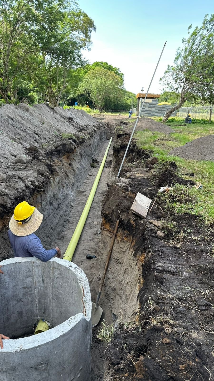 Durante la semana se logró un avance importante en la instalación de la red sanitaria, ejecutando excavaciones, instalación de pozos y más de 120 metros lineales de tubería, con sus respectivas pruebas de agua y cierre de zanjas.