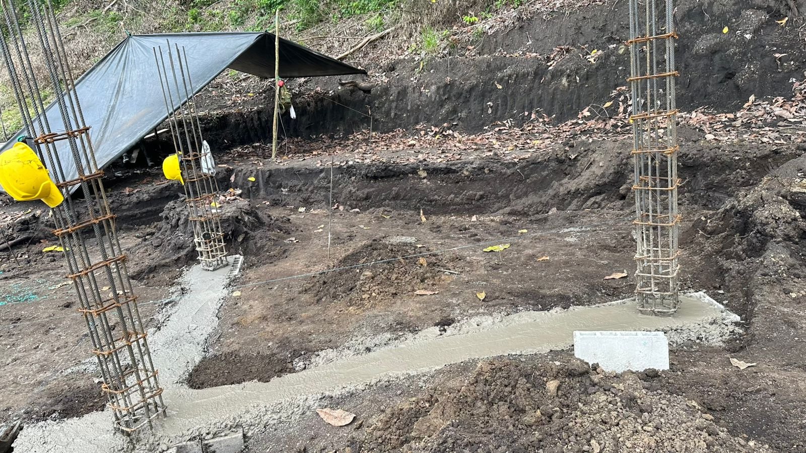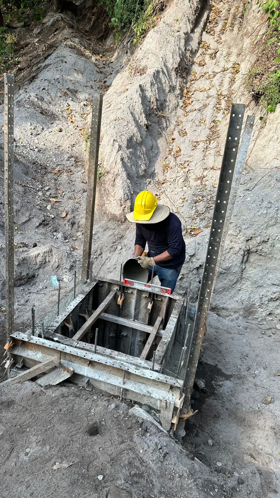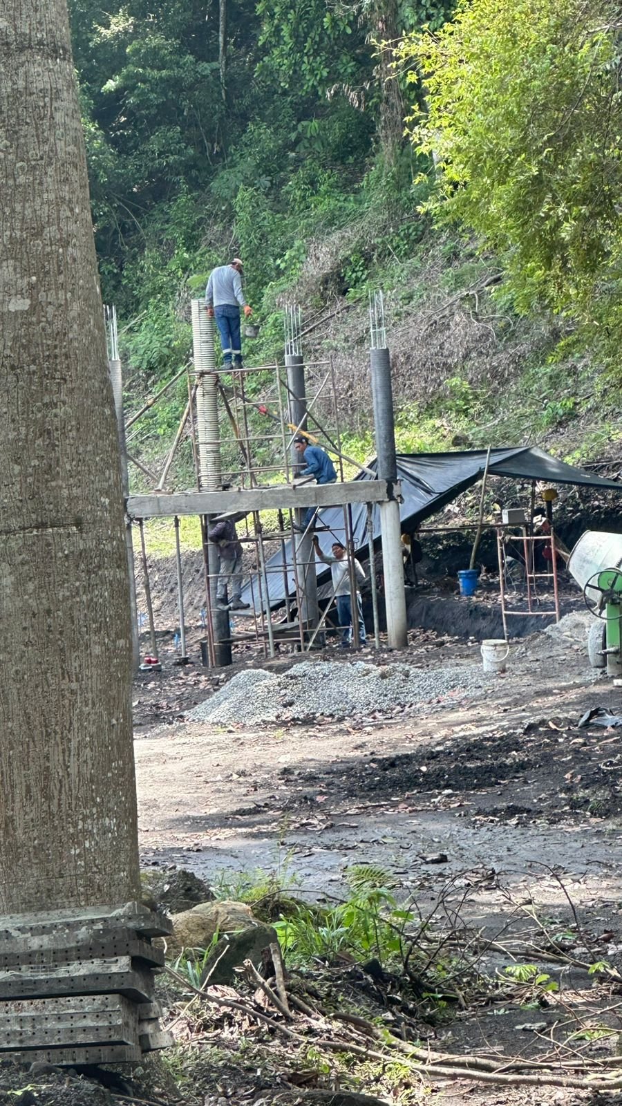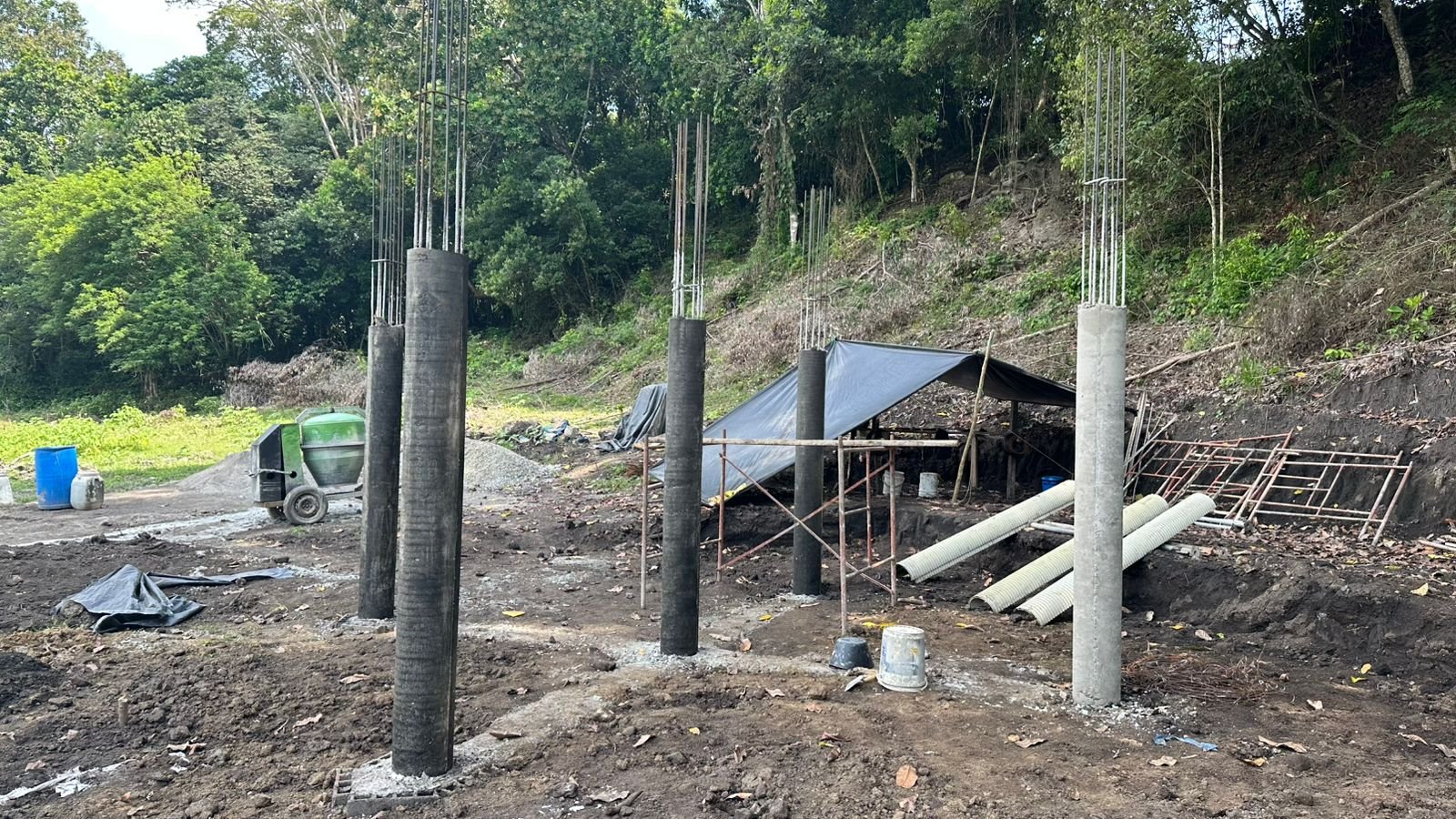 Adicionalmente, se ejecutaron trabajos estructurales en la zona del volcán, incluyendo la fundida de columnas y vigas de cimentación, junto con adecuación de terreno y conformación de vías en diferentes sectores del proyecto.