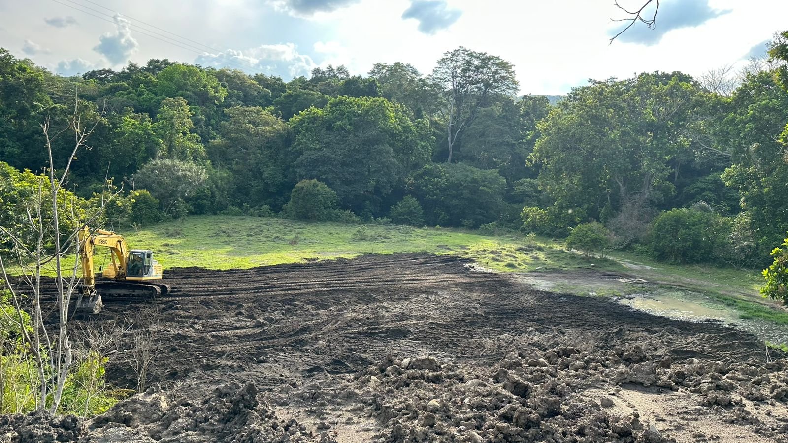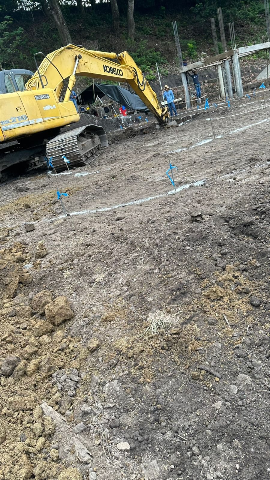 Durante la semana se avanzó en trabajos de adecuación y movimiento de tierras, incluyendo excavaciones para postes, conformación de terrazas y perfilado de manzanas.